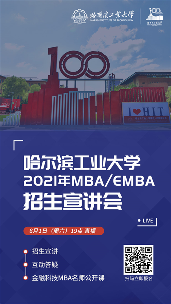 為了幫助更多考生了解和報(bào)考哈爾濱工業(yè)大學(xué)MBA項(xiàng)目和EMBA項(xiàng)目,哈爾濱工業(yè)大學(xué)將于2020年8月1日,舉辦哈爾濱工業(yè)大學(xué)經(jīng)濟(jì)與管理學(xué)院2021年MBA/EMBA招生宣講會(huì)!