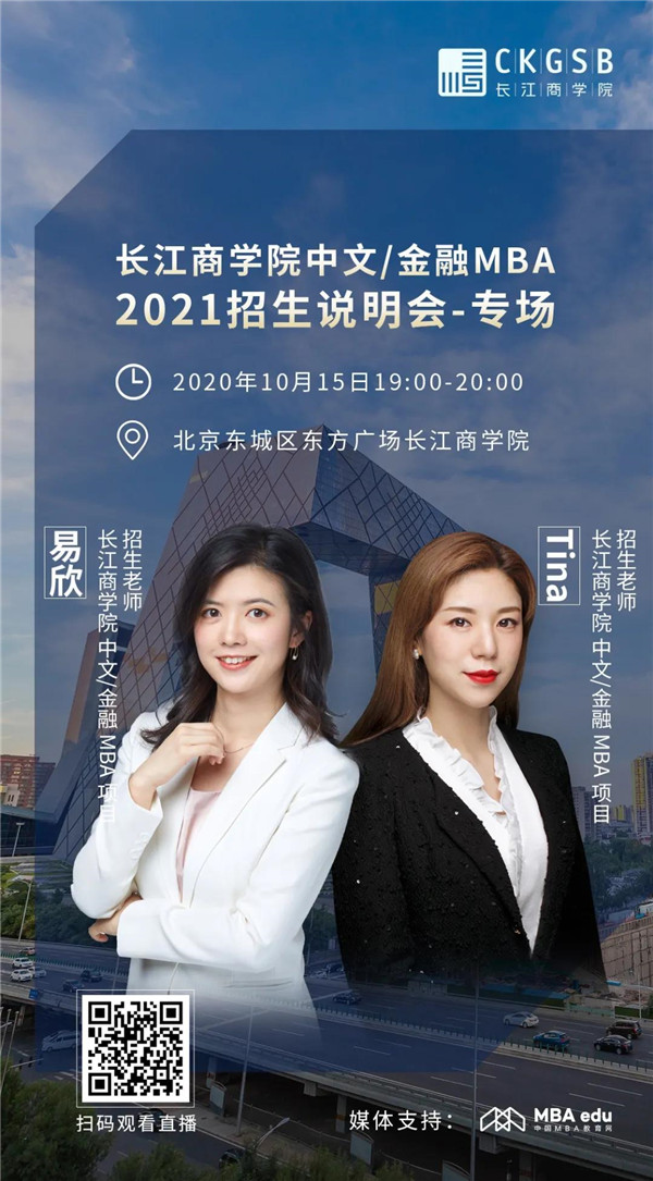 10月15日,長江中文/金融MBA將于北京東城區(qū)東方廣場舉辦一場長江中文/金融MBA招生咨詢會。屆時,你將接觸到中文/金融MBA新思維、新視野和新對策,了解院校招生政策,理清報考流程,直擊考研痛點。