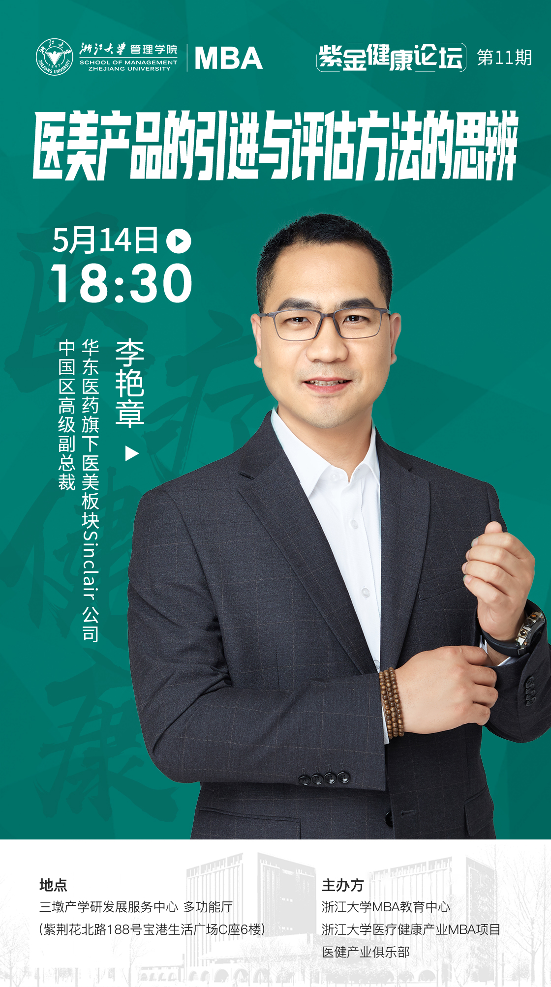5月14日,浙江大學(xué)MBA教育中心、浙江大學(xué)醫(yī)療健康產(chǎn)業(yè)MBA項(xiàng)目及醫(yī)健產(chǎn)業(yè)俱樂部共同主辦的紫金健康論壇邀請到華東醫(yī)藥旗下醫(yī)美板塊Sinclair 公司中國區(qū)高級副總裁李艷章與大家共同探討這些熱門話題。