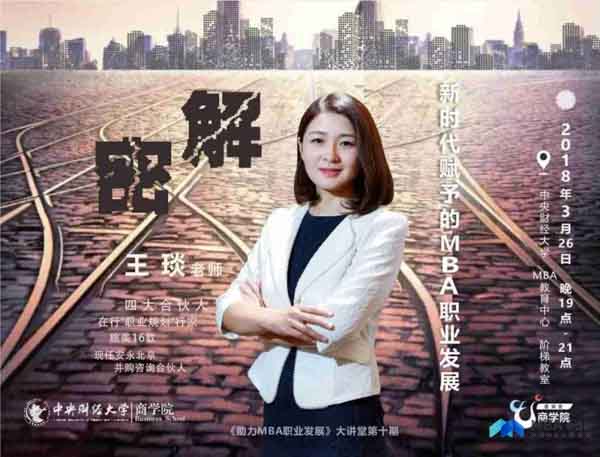 為幫助眾多在校生及往屆校友獲得職場(chǎng)轉(zhuǎn)型、提升職場(chǎng)價(jià)值,2018年中央財(cái)經(jīng)大學(xué)MBA教育中心協(xié)同北京合眾合信息技術(shù)公司整合相關(guān)資源,攜手舉辦《助力MBA職業(yè)發(fā)展·大講堂》。主要包括內(nèi)容如下: