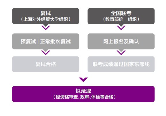 擬錄取申請人在學(xué)歷驗證、申請材料及檔案審查通過后獲得正式錄取資格,在與上海對外經(jīng)貿(mào)大學(xué)簽署培養(yǎng)協(xié)議后,將獲得正式錄取通知書(2019年6月-7月)。