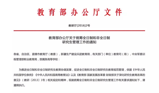 教育部發(fā)布統(tǒng)籌全日制和非全日制研究生管理工作通知