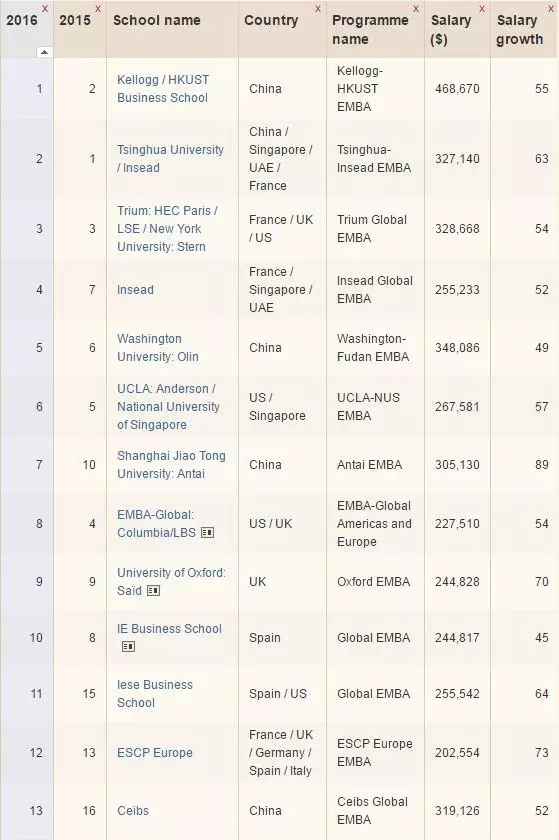 【中國MBA教育網(wǎng)訊】2016年10月17日,2016年FT英國《金融時報》全球EMBA排名榜單揭曉。在此份榜單上,中國多家商學院名列前茅,中國相關(guān)的EMBA項目總能在全球榜單中有不錯表現(xiàn)引發(fā)新一輪關(guān)注。
