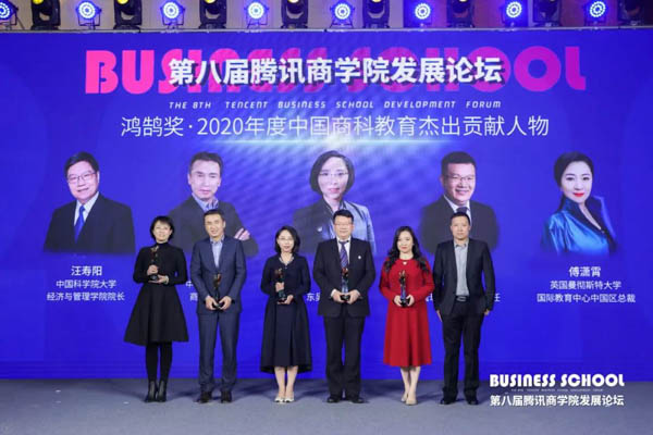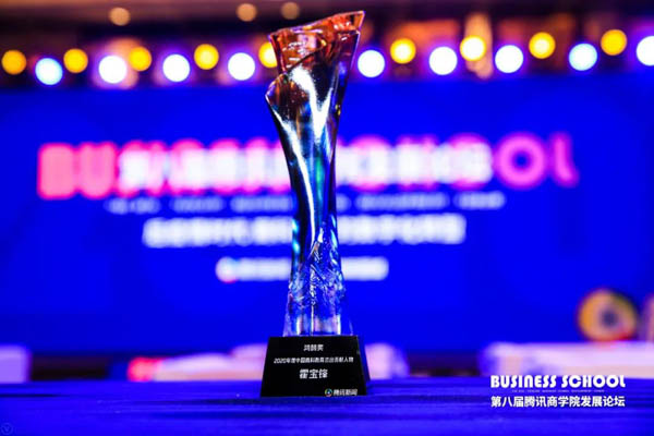 論壇上,霍寶鋒被評(píng)為“鴻鵠獎(jiǎng)·2020年度中國(guó)商科教育杰出貢獻(xiàn)人物”。