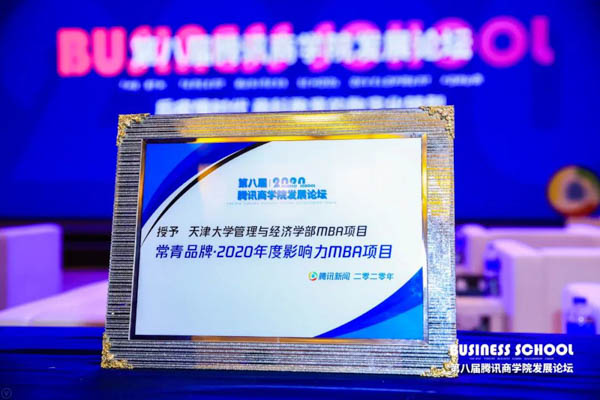 天津大學(xué)管理與經(jīng)濟(jì)學(xué)部MBA項(xiàng)目榮獲 “常青品牌·2020年度影響力MBA項(xiàng)目”榮譽(yù)稱號(hào)。