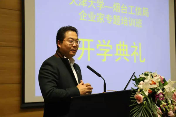 開班典禮由天津大學(xué)宣懷學(xué)院EDP中心主任夏爽主持,煙臺工信局黨組成員孫成國、煙臺市工信局培訓(xùn)與交流科科長王培勇、天津大學(xué)管理與經(jīng)濟學(xué)部主任霍寶鋒、天津大學(xué)宣懷學(xué)院副院長鄒強出席開班典禮并講話。