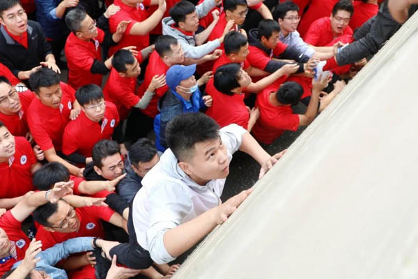 10月7日-10月8日,天津大學(xué)2020級MBA新生素質(zhì)拓展在大午體育館如期舉行。 約400名MBA新生在項(xiàng)目老師帶領(lǐng)下參加了本次拓展。 素質(zhì)拓展作為MBA新生第一課,旨在培養(yǎng)學(xué)生的組織能力、團(tuán)隊(duì)溝通和合作能力,增強(qiáng)學(xué)生的集體榮譽(yù)感和歸屬感。同時(shí)將愛國教育、天津大學(xué)品格、MBA文化融入拓展項(xiàng)目之中,培養(yǎng)同學(xué)們愛國、愛校情懷,增強(qiáng)天津大學(xué)MBA同學(xué)的凝聚力。 通過為期2天的團(tuán)隊(duì)建設(shè),同學(xué)們從陌生到熟悉,再到團(tuán)隊(duì)分工協(xié)作共同完成一項(xiàng)項(xiàng)艱巨的任務(wù),MBA新生充分體會(huì)了溝通與團(tuán)結(jié)的力量。 2020級MBA迎新晚會(huì) 此次素質(zhì)拓展恰逢天津大學(xué)校慶,為此舉辦了以“同慶建校125周年 喜迎北洋20級后浪”為主題2020級MBA迎新晚會(huì),晚會(huì)現(xiàn)場熱情火爆,充分點(diǎn)燃了現(xiàn)場同學(xué)們的激情。 經(jīng)典的團(tuán)隊(duì)印記環(huán)節(jié) 師生共同點(diǎn)燃了6800支蠟燭拼出的125周年校慶的LOGO為天大慶生,也將本次素質(zhì)拓展推向了高潮。 獻(xiàn)禮天津大學(xué)125周年的納斯卡巨畫 最后,同學(xué)們共同繪制納斯卡巨畫獻(xiàn)禮天大,并為自己成為一名“天之驕子”而驕傲,此次拓展在歡樂、祥和的氣氛中圓滿結(jié)束。
