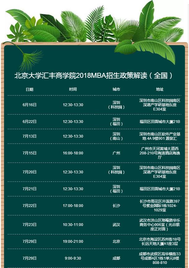 為了幫助您更好地了解北大匯豐MBA項目和2018年招生政策,MBA項目辦公室將在全國以下城市及地區(qū)組織多場宣講會,誠摯地邀請您參加。