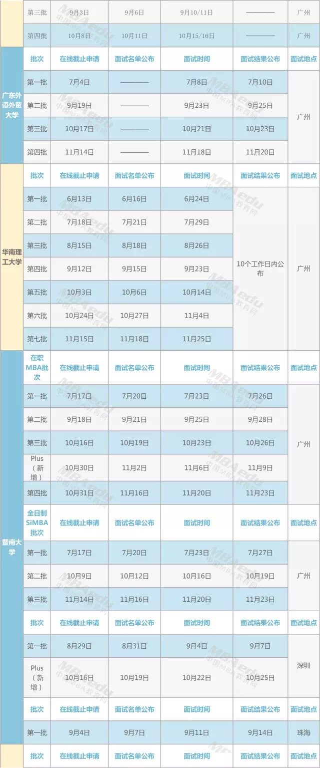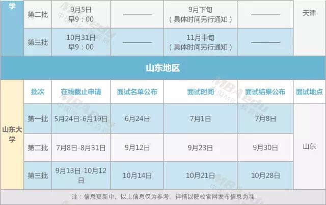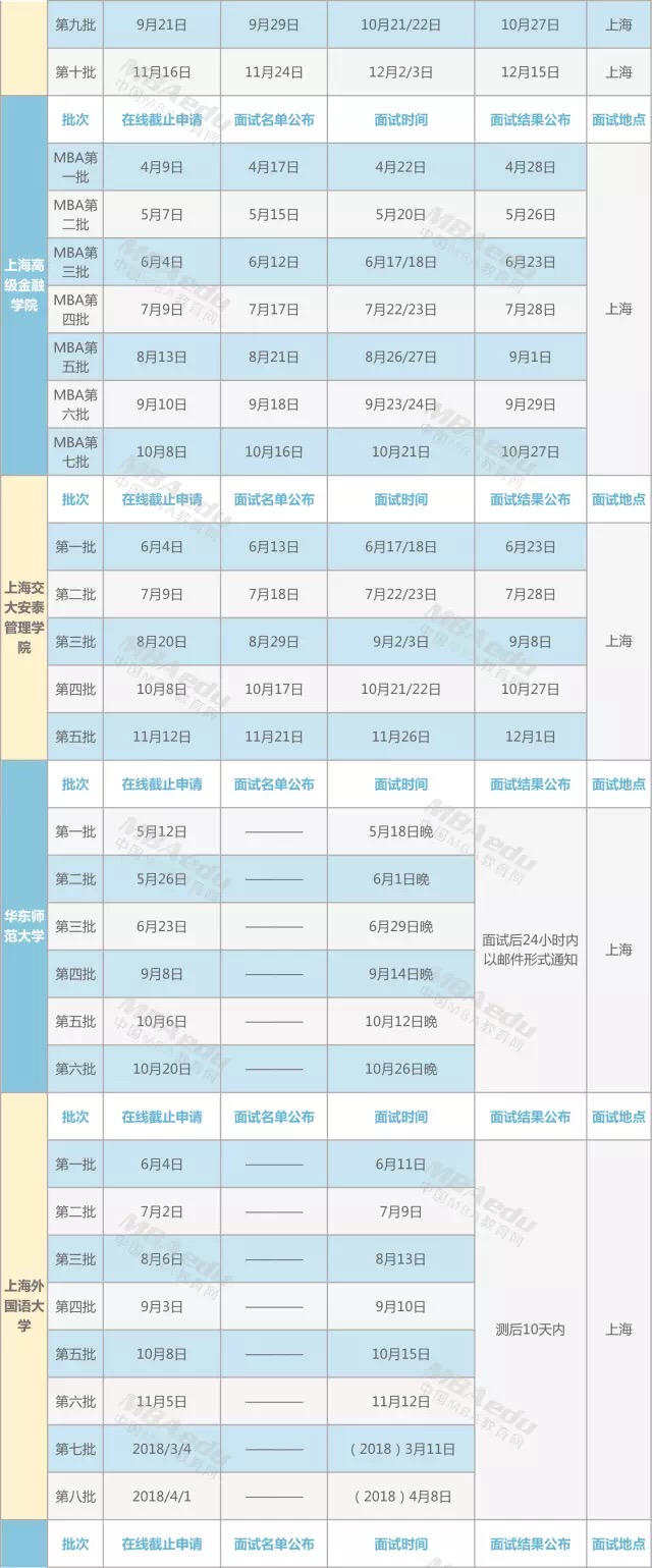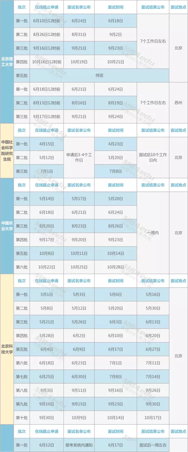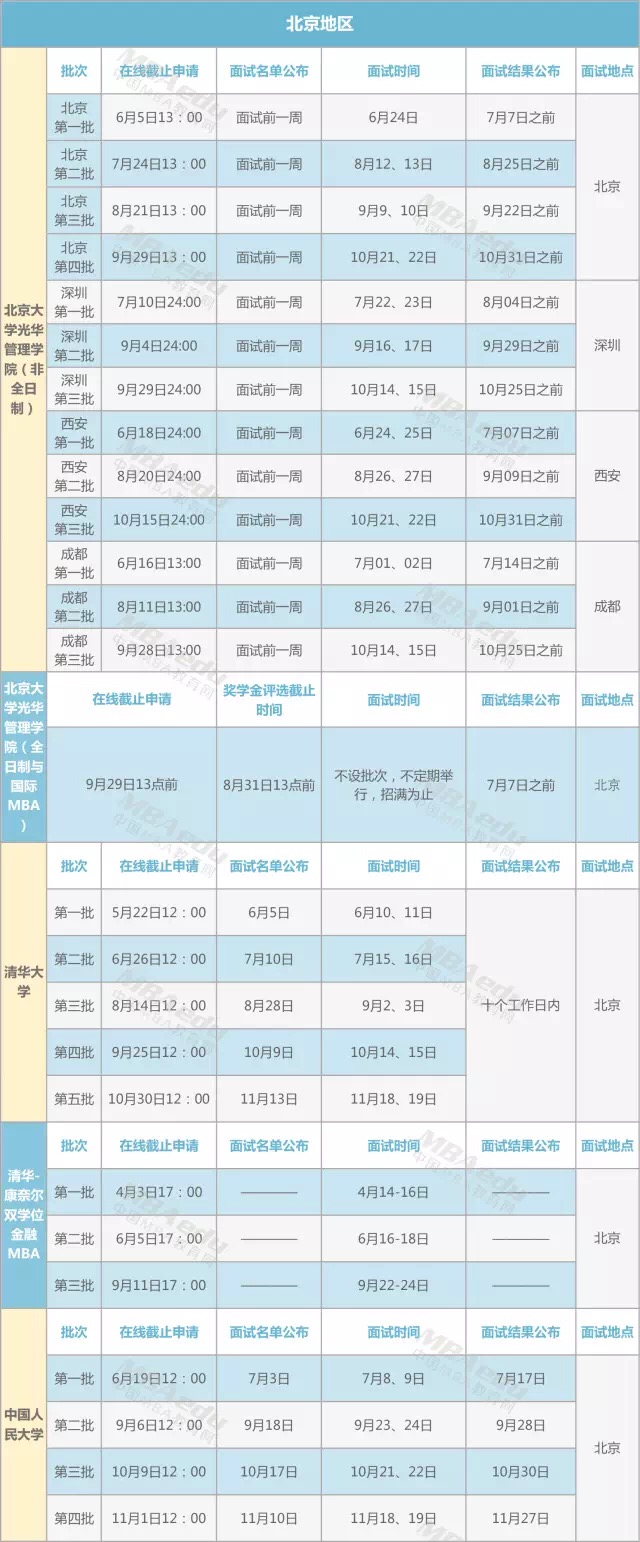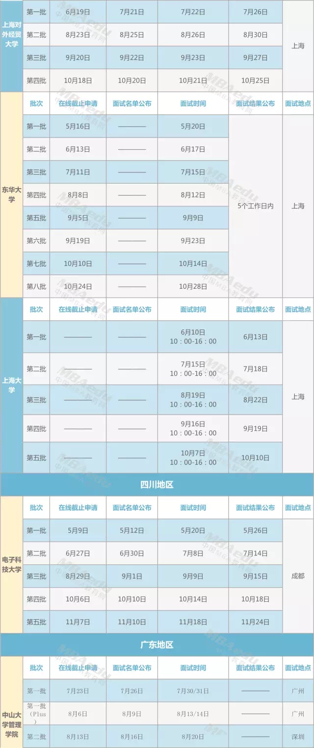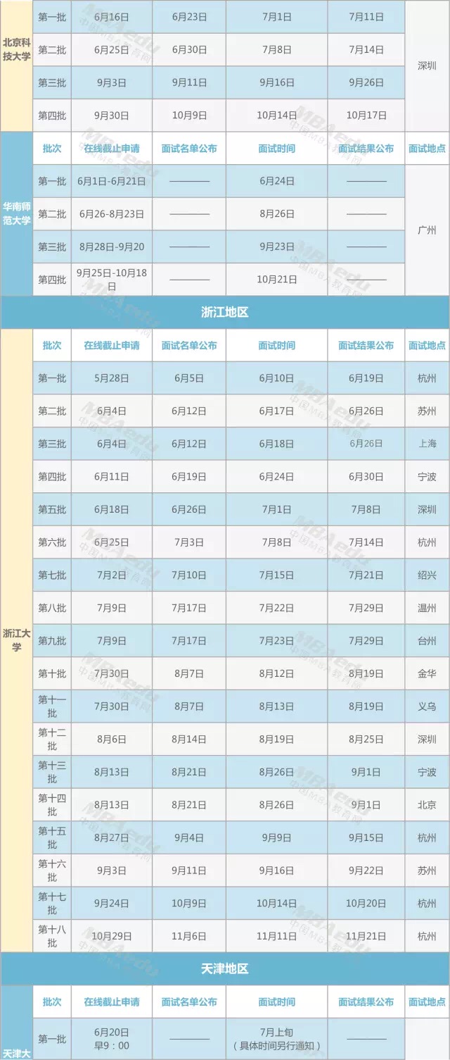 近期一段時間是MBA考生提前面試階段,設(shè)立提面的院校正火熱有序的進行著。那么全國各院校進行提前面試的時間,院校各批次面試的時間具體怎樣安排的呢?小編就帶大家一睹為快 — —