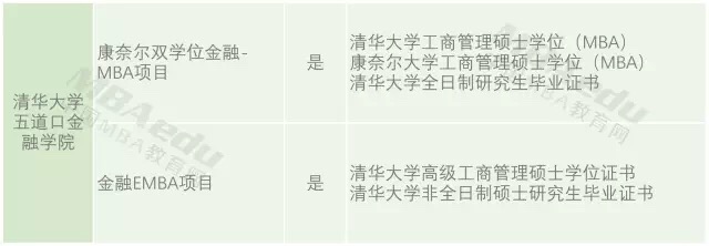 同樣我們以最具代表性的MBA、EMBA為例,比較清華經(jīng)管學(xué)院與五道口金融學(xué)院在這類教育項目中所頒發(fā)的證書,主要涉及學(xué)位證和學(xué)歷證(畢業(yè)證)。需要參加全國MBA聯(lián)考的教學(xué)項目有清華經(jīng)管學(xué)院的MBA項目、全球MBA項目、首席財務(wù)官高級管理碩士、清華EMBA項目、北卡羅萊納大學(xué)-EMBA項目,以及五道口金融學(xué)院的金融MBA項目、金融EMBA項目,以上項目除相應(yīng)的學(xué)位證之外還可獲得清華大學(xué)研究生畢業(yè)證,即學(xué)歷證。清華經(jīng)管學(xué)院的金融財務(wù)MBA項目和國際EMBA項目不需要參加全國聯(lián)考,只能獲得相應(yīng)的學(xué)位證。
