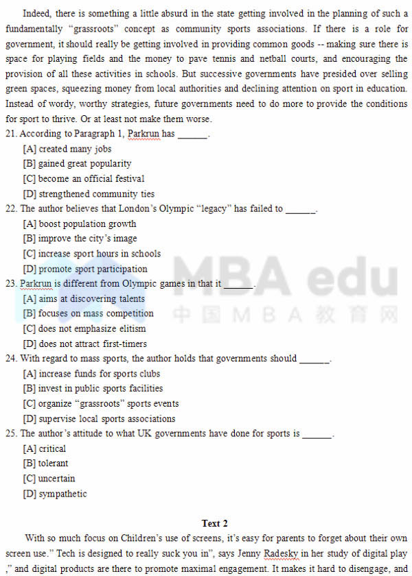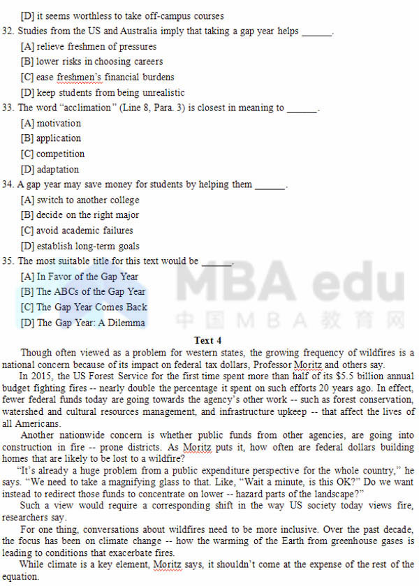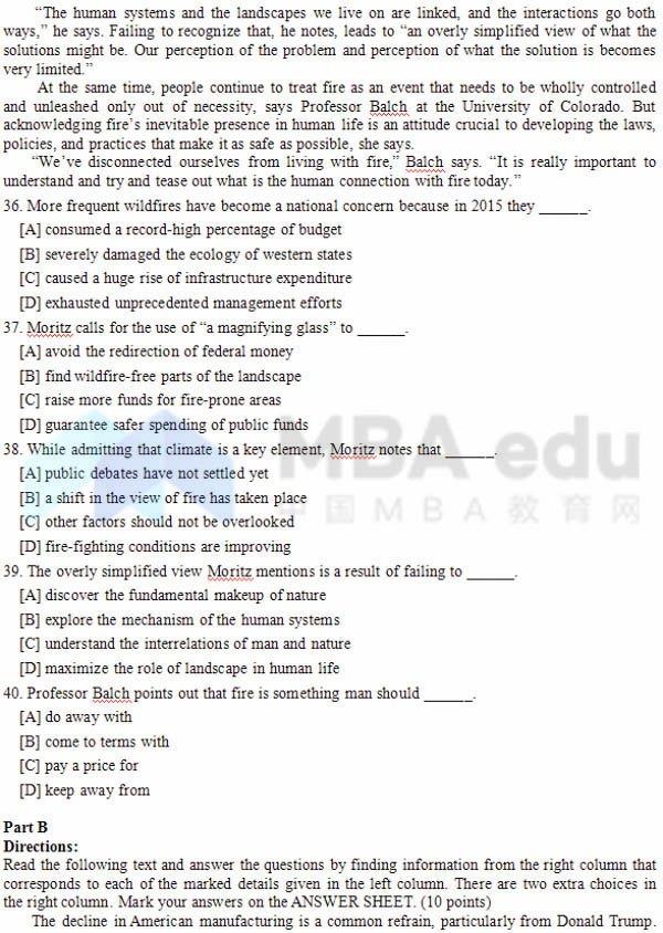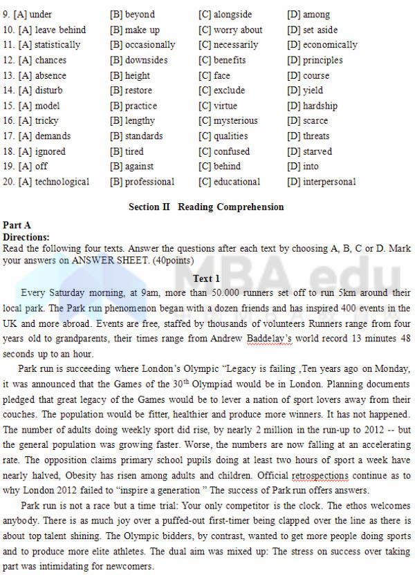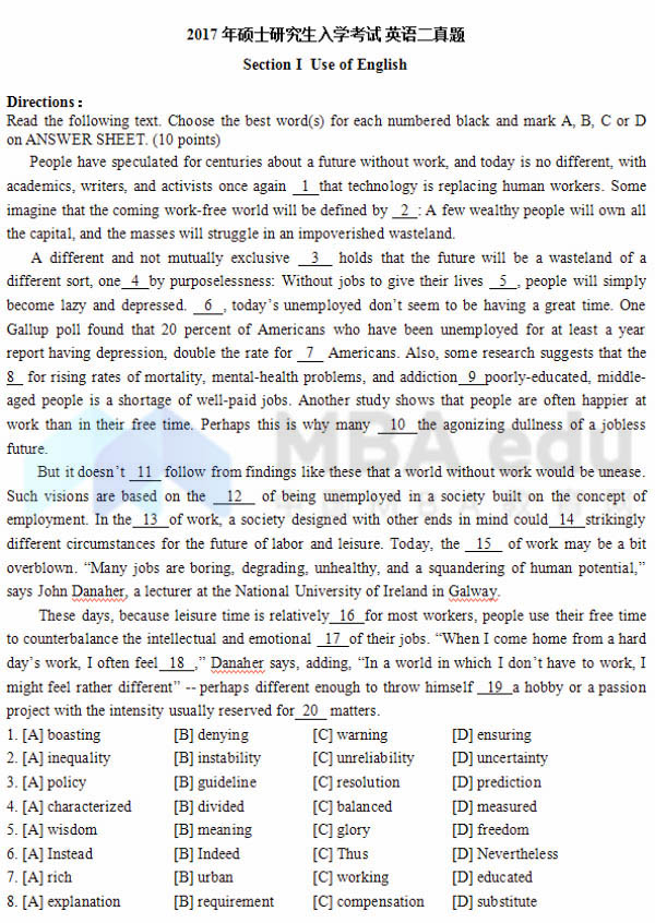 2017年全國碩士研究生管理類專業(yè)學(xué)位聯(lián)考真題(英語試卷)