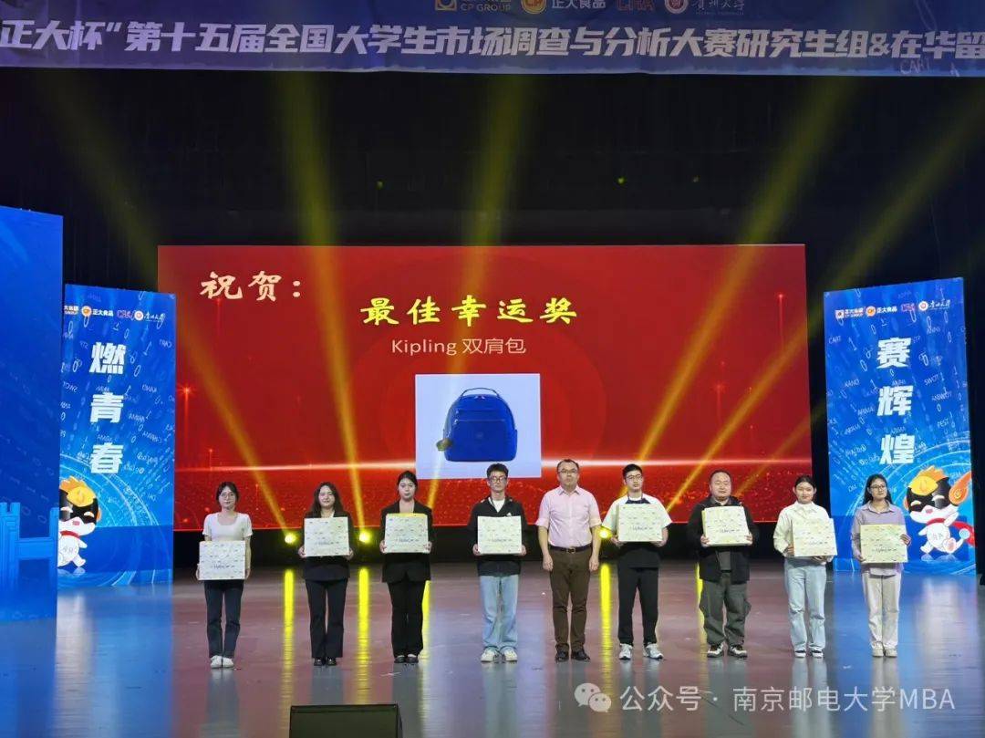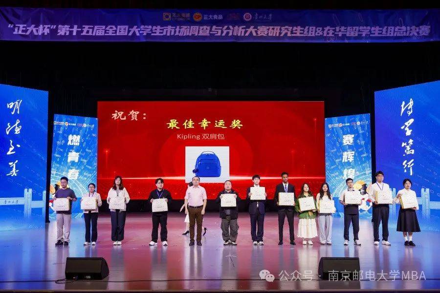 當獲獎名單現(xiàn)場公布時,氣氛到達一個小高潮,MBA中心教師孫建敏受組委會邀請擔任本環(huán)節(jié)頒獎嘉賓。這也是大賽組委會對南京郵電大學培養(yǎng)的學生們在該項賽事中表現(xiàn)的認可。