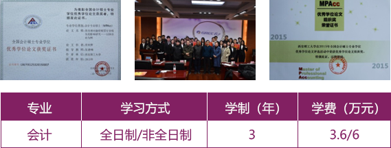 學院MPAcc項目自2011年辦學以來,已經形成了學生職業(yè)技能與學術素養(yǎng)并重,培養(yǎng)質量與辦學規(guī)模穩(wěn)定的發(fā)展態(tài)勢。2015年學院MPAcc項目順利通過國務院學位辦組織的專業(yè)學位教育項目專項評估。在2014年、2015年、2016年全國會計碩士專業(yè)學位優(yōu)秀學位論文評比中,學院連續(xù)三年獲得全國優(yōu)秀學位論文,2015年獲優(yōu)秀學位論文組織獎。