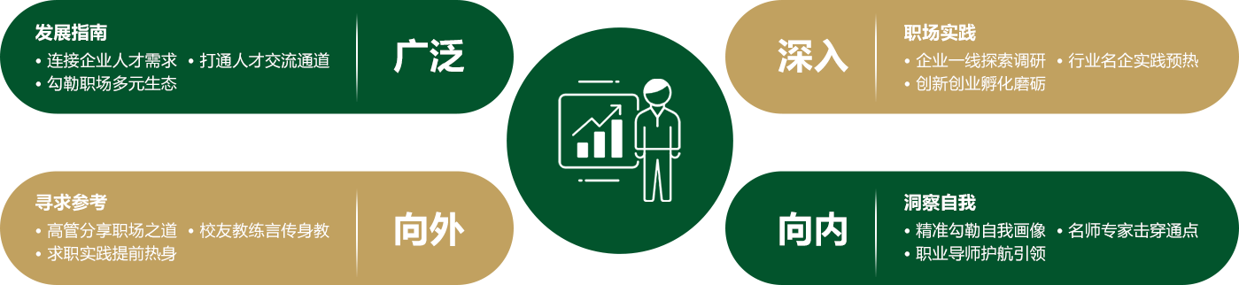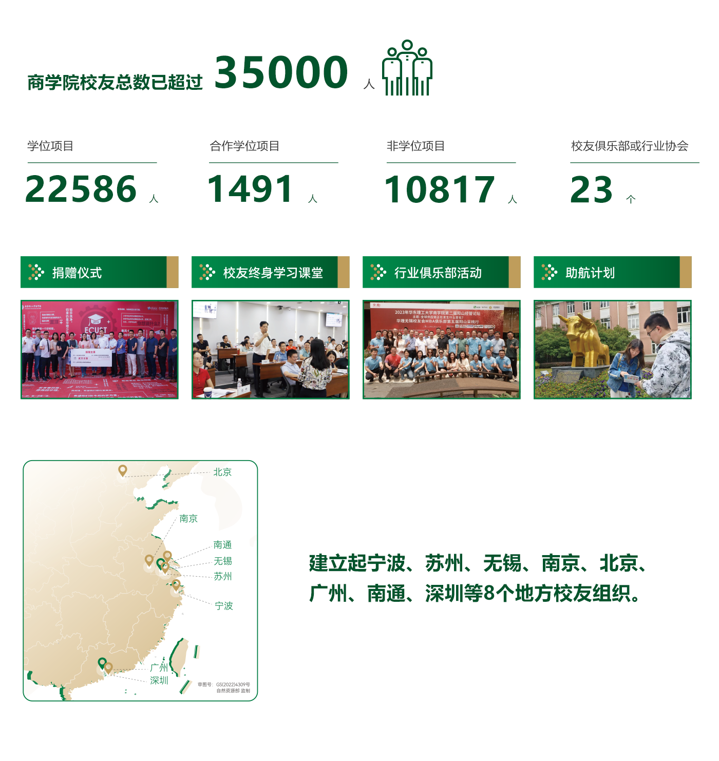 華東理工大學(xué)商學(xué)院秉承“基于交流而發(fā)展”的全過程培養(yǎng)理念,致力于打造專業(yè)知識交流、管理經(jīng)驗交流、社會網(wǎng)絡(luò)建構(gòu)三大交流平臺。為學(xué)生提供優(yōu)質(zhì)的教育資源,讓教師與學(xué)生之間、學(xué)生與學(xué)生之間相互交流,并共創(chuàng)知識,通過“知行合一”講壇、企業(yè)課堂等讓來自于不同行業(yè)不同企業(yè)的高管與學(xué)生之間、學(xué)生與學(xué)生之間分享各自的經(jīng)營管理經(jīng)驗;打造高層次的社會網(wǎng)絡(luò)關(guān)系整合平臺,通過各種俱樂部、職業(yè)導(dǎo)師、獵頭平臺等讓學(xué)生能夠結(jié)交行業(yè)內(nèi)上下游不同領(lǐng)域的同學(xué)、校友、戰(zhàn)略合作伙伴,使MBA學(xué)生從知識獲取到能力發(fā)展、從技能提升到理念創(chuàng)新、從學(xué)歷提升到職業(yè)發(fā)展,全面提升學(xué)生個人的社會資本。