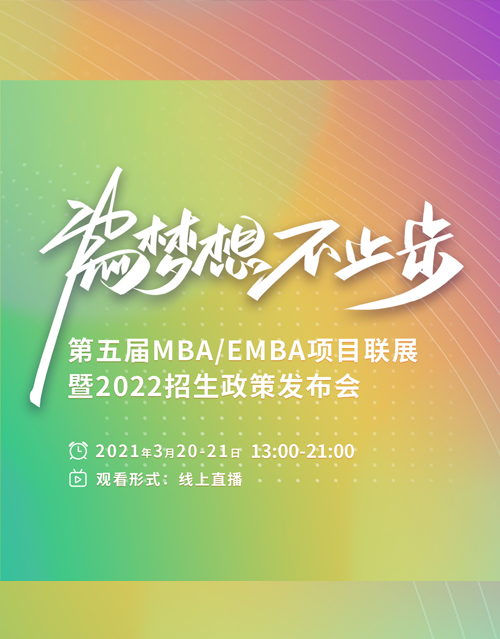 為幫助考生與院校間搭建透明、互信、深入了解的交流平臺(tái),打破區(qū)域的影響,實(shí)現(xiàn)項(xiàng)目齊全盡分享,直面院校知真相的目的。3月20日-21日,中國MBA教育網(wǎng)采用線上直播形式,聯(lián)合全國近50所商學(xué)院舉辦第五屆MBA項(xiàng)目聯(lián)展暨2022招生政策發(fā)布會(huì)(首場(chǎng)),屆時(shí)各優(yōu)秀商學(xué)院院長、MBA招生主任、招生老師親臨現(xiàn)場(chǎng),為廣大考生提供真實(shí)、實(shí)用的報(bào)考新政策,聯(lián)播兩天,揭開全國知名商學(xué)院MBA項(xiàng)目“神秘面紗”。
